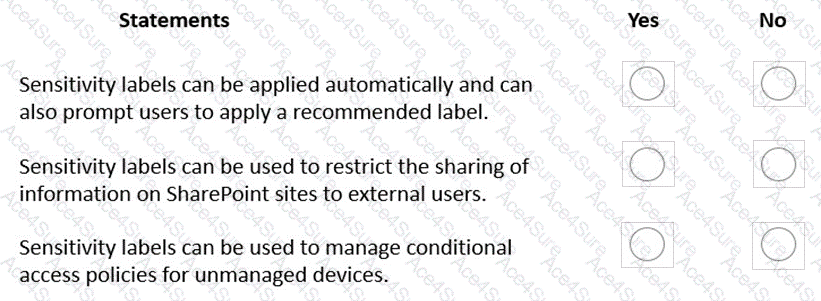 Instructions: For each of the following statements, select Yes if the statement is true. Otherwise, select No.