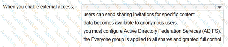 What happens when you enable external access by using the Microsoft 365 admin portal? To answer, select the appropriate options in the answer area.