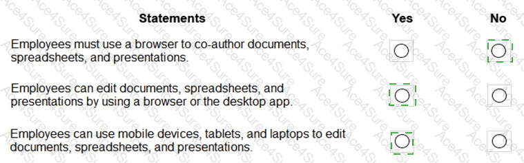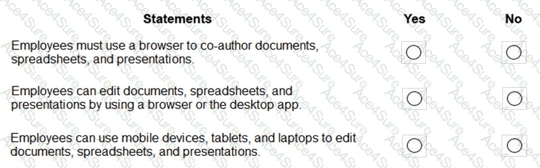 For each of the following statements, select Yes if the statement is true. Otherwise, select No.