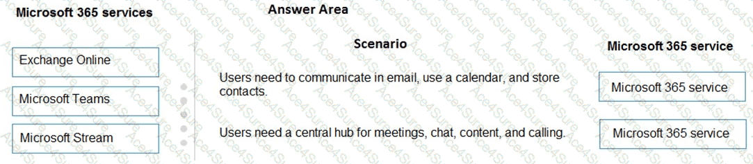 Match each scenario to itsMicrosoft 365 service. To answer, drag the appropriate Microsoft 365 service from the column on the left to its scenario on the right. Each Microsoft 365 service may be used once, more than once, or not at all.