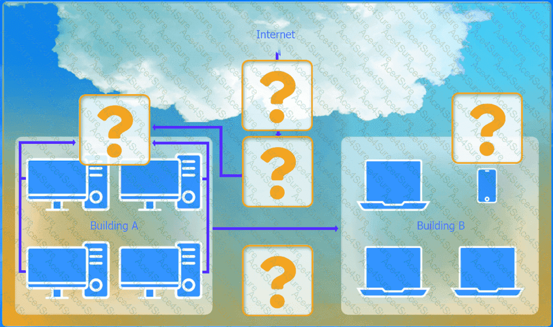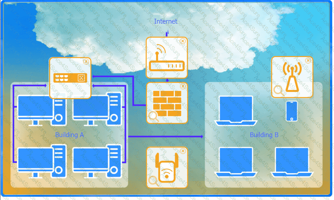 Bottom-left (Building A): Firewall (inspect traffic before it enters the network)