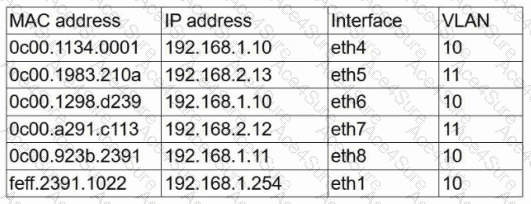 The network switch shows the following ARP table: