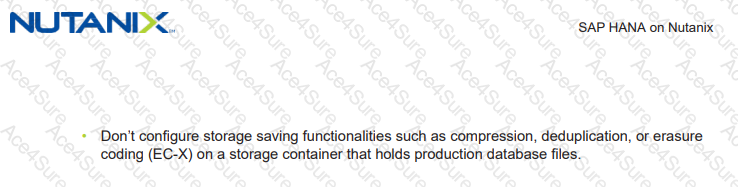 A customer wants to run SAP HANA on a Nutanix cluster with the following characteristics: