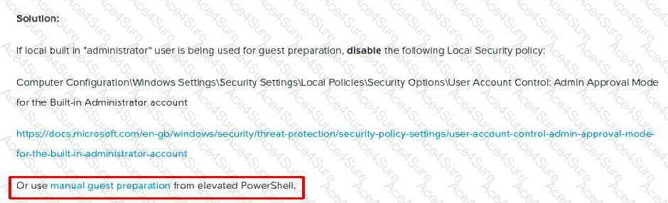 An administrator is using Nutanix Move to migrate a Windows VM from ESXi to AHV. Automated guest preparation is failing with an error:
