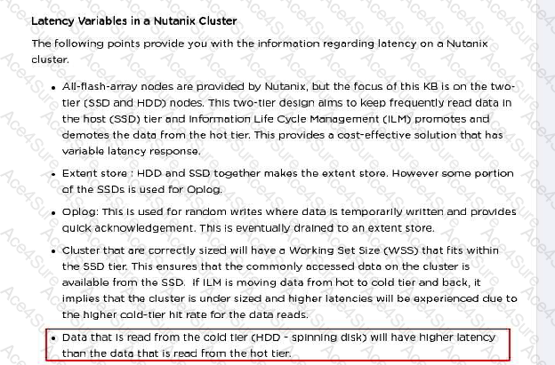 An administrator receives reports about a Nutanix environment. The investigation finds the following;