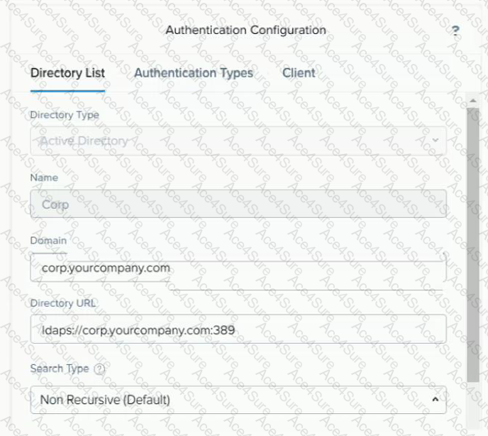 An administrator configures Active Directory authentication as shown in the exhibit. Upon finishing setup, users are not able to log in.