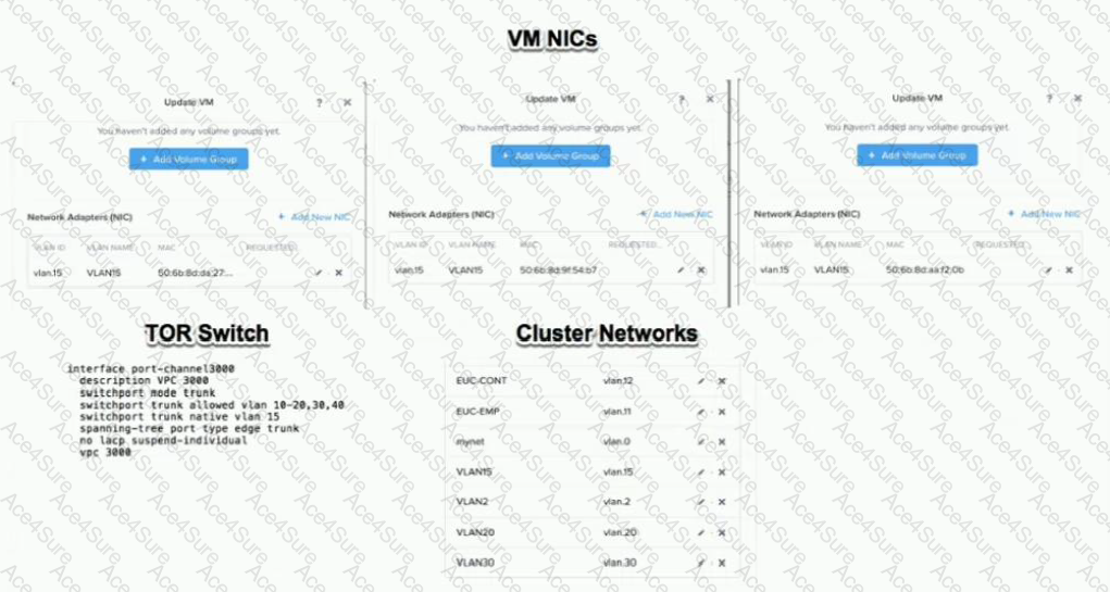 An administrator is commissioning a Nutanix Enterprise Cloud. Once the user VMs have been deployed and are running, the administrator finds that VMs on the same host are able to communicate, but are unable to communicate between hosts.