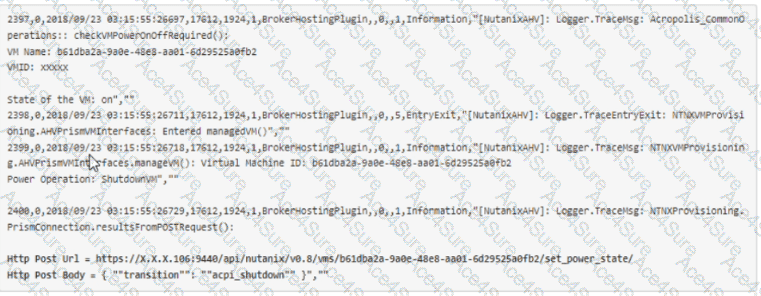 The API call sent to the VM via XD Plugin at [CDF logs]:
