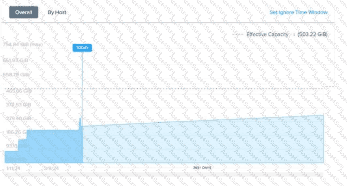 An administrator is looking at thememory cluster runway diagramas shown in exhibit, in Prism Central. The environment hasthree hostswith the following configuration: