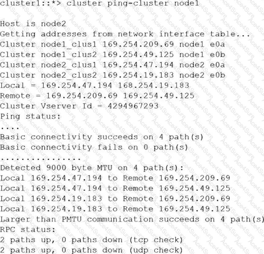 You are preparing to replace a Cisco Nexus 92300YC switch. You have executed the cluster ping-cluster node1 command and received the output shown in the exhibit.