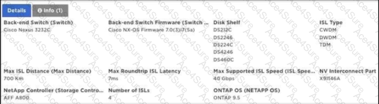 Referring to the exhibit, You have a MetroCluster IP solution that uses Cisco Nexus 3232C back-end switches for a maximum ISL distance of 700 km. What is the maximum round trip ISL latency that is supported in this scenario?