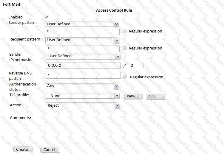 Examine the FortiMail topology and access receive rule shown in the exhibit; then answer the question below.