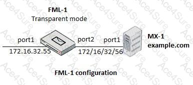 Which of the following statements are true regarding the transparent mode FortiMail’s email routing for the example.com domain? (Choose two.)