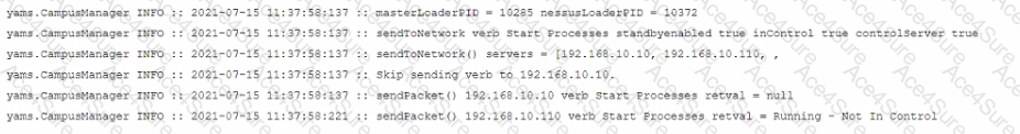 Examine the communication between a primary FortiNAC (192.168.10.10) and a secondary FortiNAC (192.166.10.110) configured as an HA pair What is the current state of the FortiNAC HA pair?