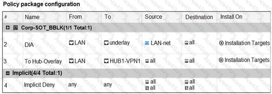 The exhibits show the SD-WAN zone configuration of an SD-WAN template prepared on FortiManager and the policy package configuration.