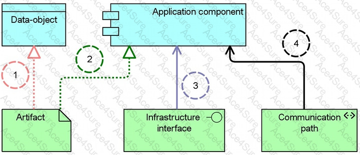 Which relationship modeled in the diagram is not allowed to connect the application layer with the technology layer?