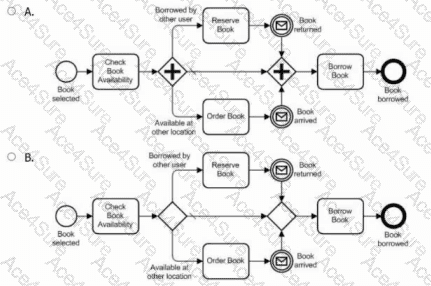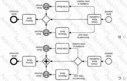 A user wants to borrow a book from her public library. At the library, she checks the avallability of the book. If it is available, she borrows it. If it is borrowed by an other user, she reserves the book and borrows it when it is returned by the other user. If the book is available at another location, she orders the book and borrows it when it arrives from the other location.