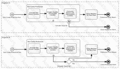 InFragment A,Run Candy Productionis a subprocess with aboundary eventlabeledExtruder Stuck Onattached to it.