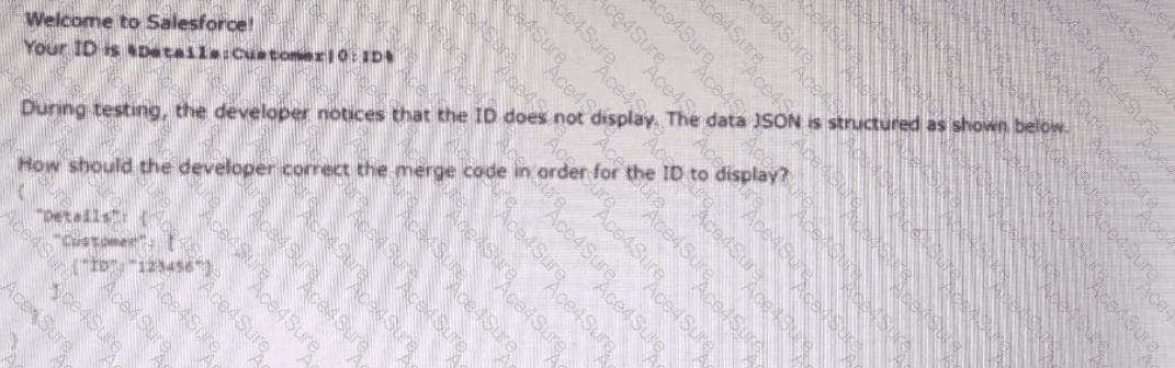 A developer is creating an OmniScript that provisions trail orgs to their customers. The following text block in the Omniscript uses a merge code to display the ID for the new trail org: