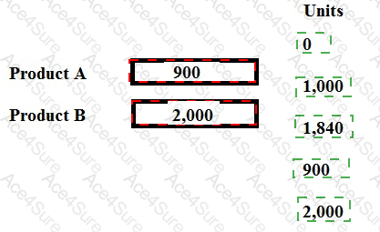Place the production volumes of Product A and Product B, that will maximize contribution, in the table.