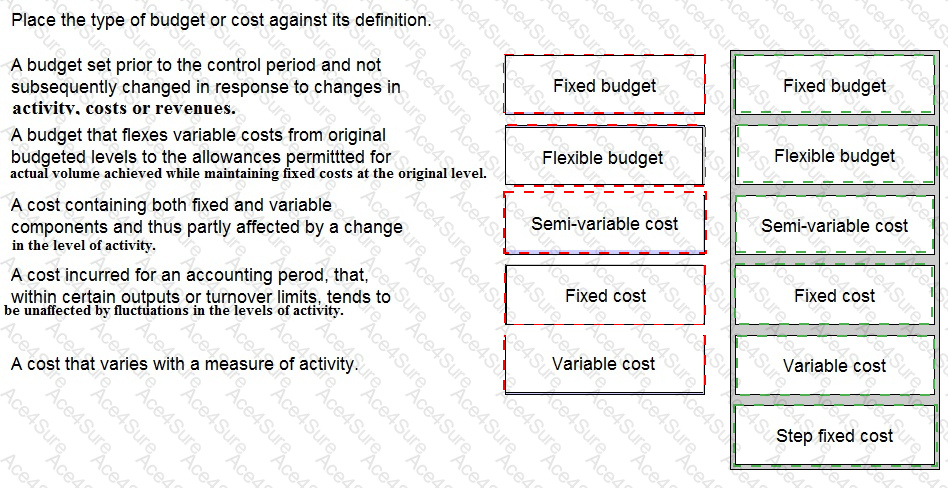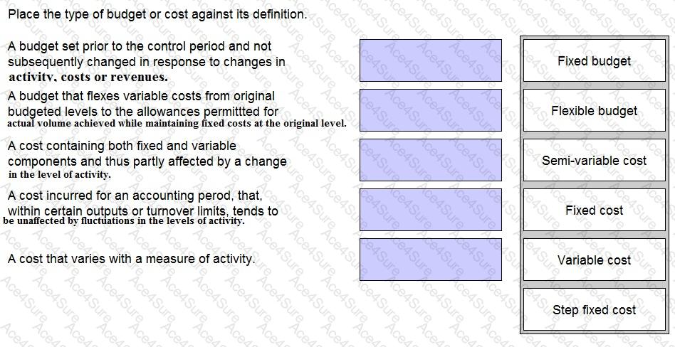 Place the type of budget or cost against its definition.