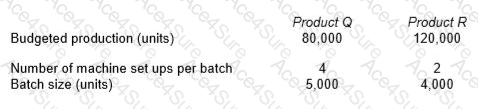 QR uses an activity based budgeting (ABB) system to budget product costs. It manufactures two products, product Q and product R. The budget details for these two products for the forthcoming period are as follows: