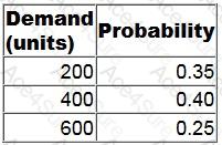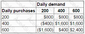 The payoff table below shows the profit that would be earned for each of the combinations of purchases and demand.