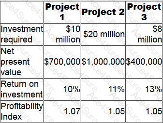 A company has a cost of capital of 12% and a maximum of $20 million to invest. It has identified three possible investment projects, none of which is divisible, as follows.