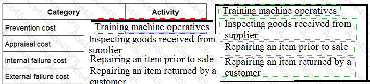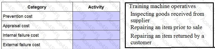 Place each of the activities described below against the correct classification of quality costs.
