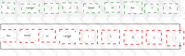 Arrange the code boxes in the correct positions in order to obtain a loop which executes its body with the level variable going through values 5, 1, and 1 (in the same order).