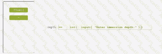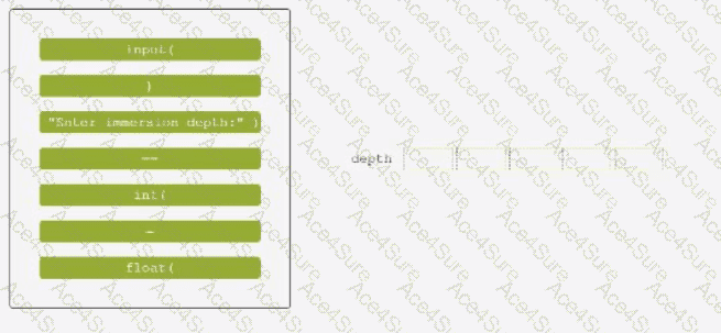 Insert the code boxes in the correct positions in order to build a line of code which asks the user for an integer value and assigns it to the depth variable.