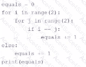 The code starts with assigning the values 1 and 2 to the variables “num1” and “num2” respectively. Then, it enters an if statement that compares the values of “num1” and “num2” using the equality operator (==). If the values are equal, the code prints 4 to the screen. If the values are not equal, the code prints 1 to the screen.