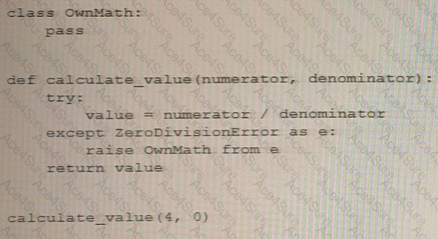 In the given code snippet, an instance of OwnMath exception is raised with an explicitly specified __cause__ attribute that refers to the original exception (ZeroDivisionError). This is an example of explicitly chaining exceptions in Python.