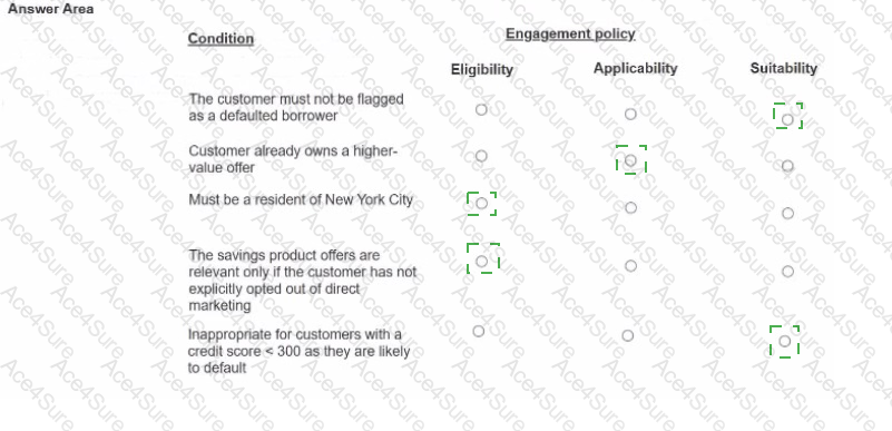 In the Answer Area, select the correct engagement policy for each condition.