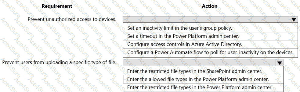 A company deploys several model-driven apps. The company uses shared devices in their warehouse. The devices are always powered on. Users log on to the devices and then launch the apps to perform actions.