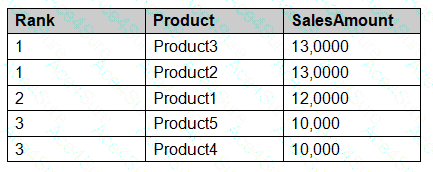 You need to add a measure to rank total sales by product. The results must appear as shown in the following table.