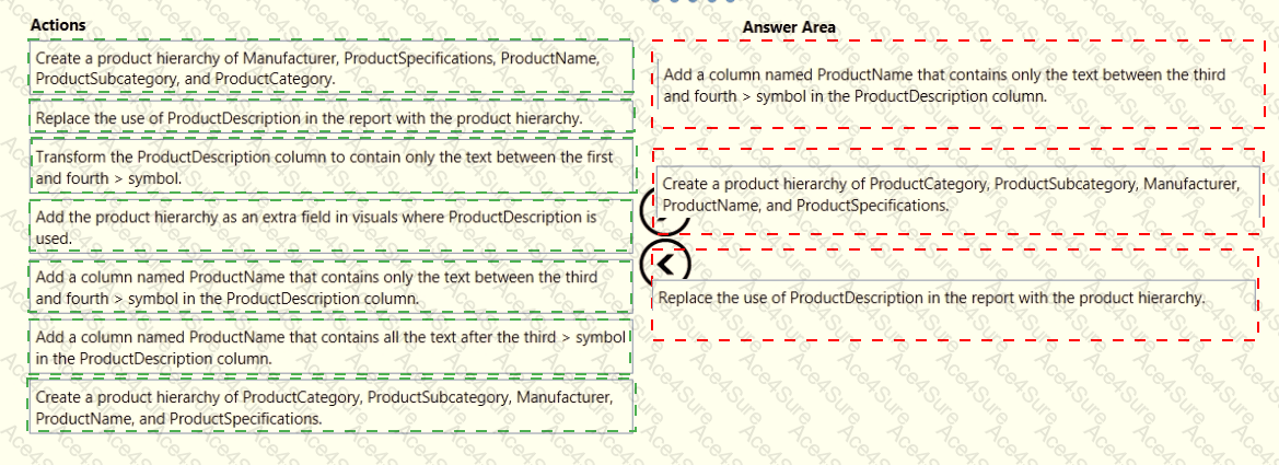 Warehouse managers report that it is difficult to use the report because the report uses only the product name in tables and visuals. The product name is contained within the ProductDescription column and is always the fourth value.