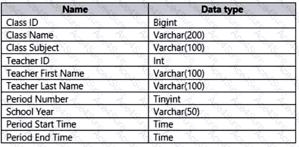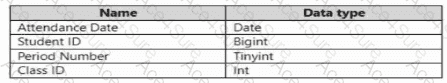 You plan to create a Power Bl dataset to analyze attendance at a school. Data will come from two separate views named View1 and View? in an Azure SQL database. View1 contains the columns shown in the following table.