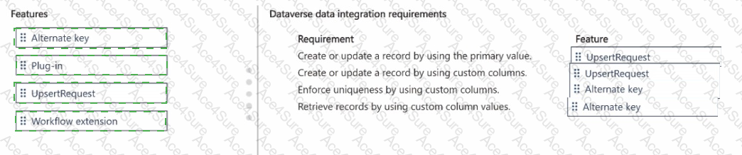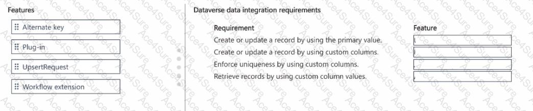 You are implementing data integration that involves Dataverse. You have a table named Tablel that has the following two custom columns: ColumnA and ColumnB. You need to integrate the data to meet the following requirements: