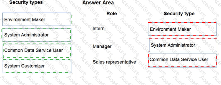 Which security roles should you use? To answer, drag the appropriate security types to the correct roles. Each security type may be used once, more than once, or not at all. You may need to drag the split bar between panes or scroll to view content.