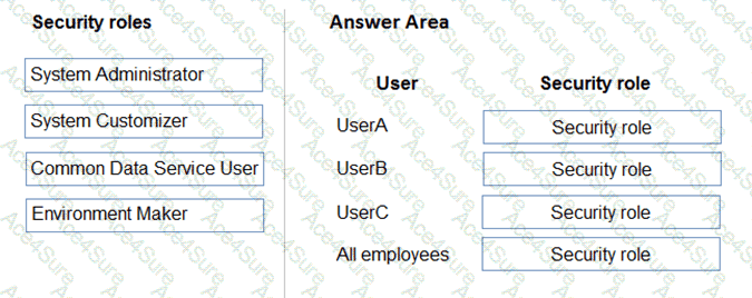UserC must be able to create apps connected to the systems and update the security roles and entities.