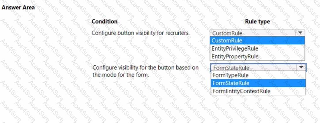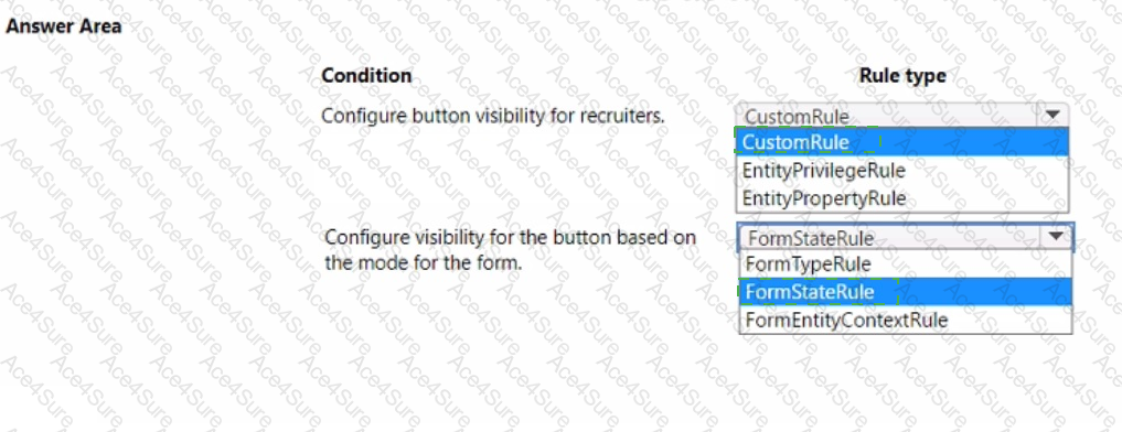 You need to implement ribbon display rules to control availability for the scoring command button. Which rule types should you use? To answer, select the appropriate options in the answer area. NOTE: Each correct selection is worth one point.