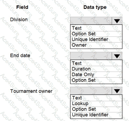 Which data types should you use? To answer, select the appropriate options in the answer area.