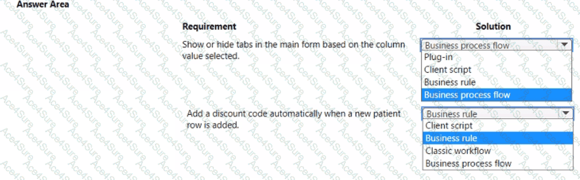 A company uses Microsoft Dataverse to store patient Information-Patient information is managed using Dataverse forms. The company must enforce the following rules to manage data quality: