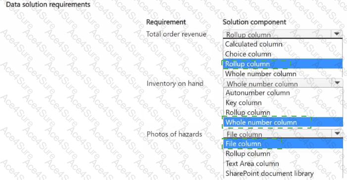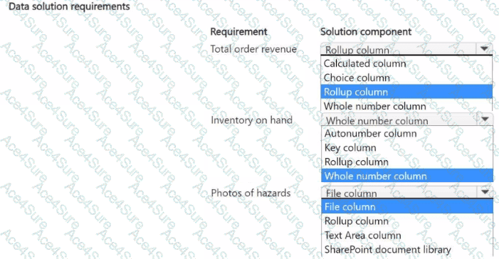 Which data solution component should you use for each requirement? To answer, select the appropriate options in the answer area.