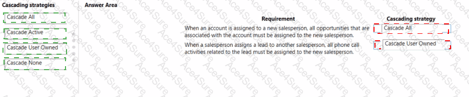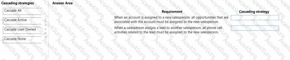Which cascading strategy should you recommend? To answer, drag the appropriate cascading strategies to the correct requirements. Each cascading strategy may be used once, more than once, or not at all. You may need to drag the split bar between panes or scroll to view content