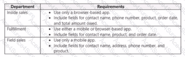 You are designing forms for a Microsoft Power Platform solution. Each person must see only the columns required for their department.