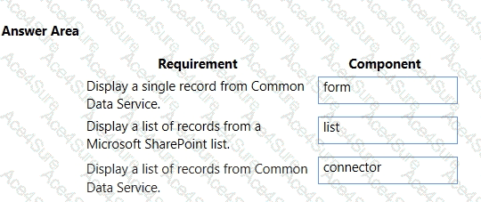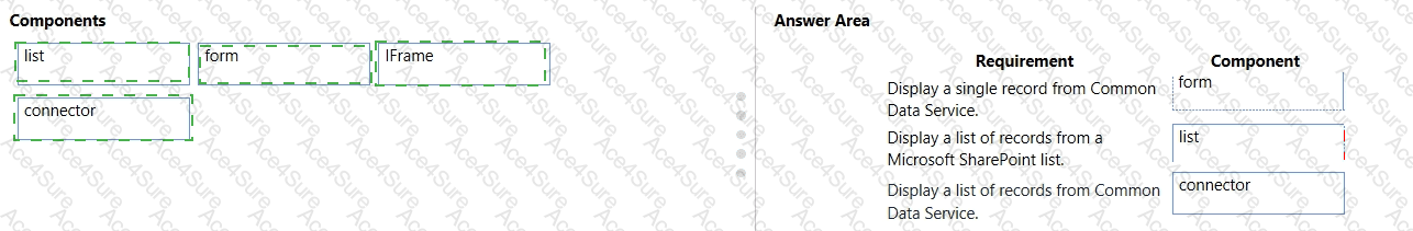 Which components should you use? To answer, drag the appropriate components to the correct requirements. Each component may be used once, more than once, or not at all. You may need to drag the split bar between panes or scroll to view content.