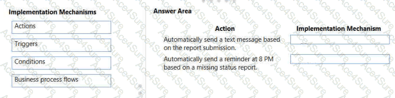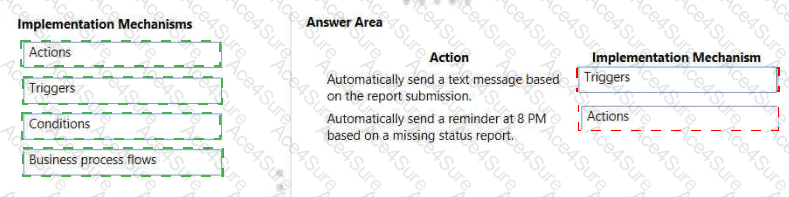 What should you use? To answer, drag the appropriate implementation mechanisms to the correct requirements. Each implementation mechanism may be used once, more than once, or not at all. You may need to drag the split bar between panes or scroll to view content