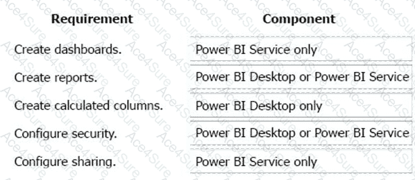What should you recommend? To answer, drag the appropriate components to the correct requirements. Each component may be used once, more than once, or not at all. You may need to drag the split bar between panes or scroll to view content.